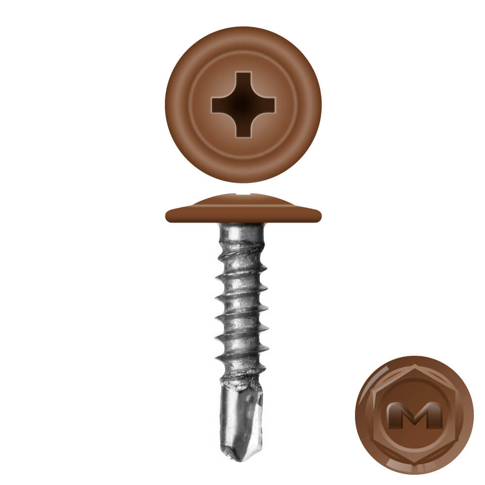 Caморез ПШС по металлу 4,2х25 RAL8007 Темное дерево (Каштан) прессшайба сверло