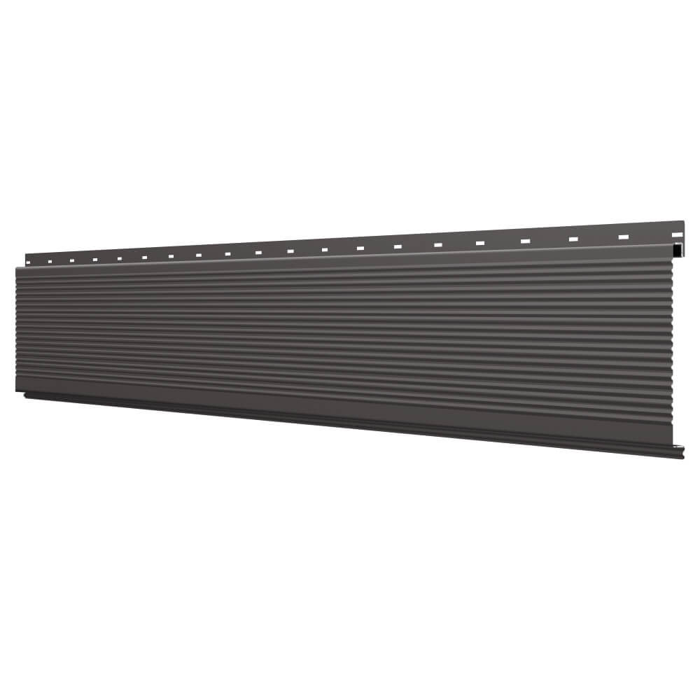 Линеарная потолочно-стеновая панель РИФЛЕНАЯ усиленная цвет RAL8019 Темный Шоколад применяется в качестве софитов для подшивы крыши, наружной и внутренней отделки потолков, стен, фронтонов фасада дома в Кемерове.