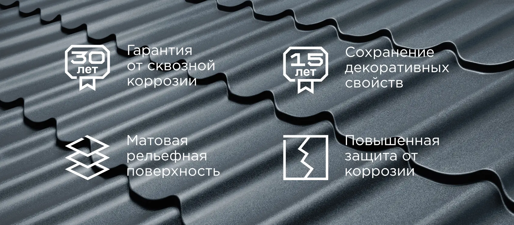 Металлическая черепица с покрытием Rooftop Matte Стальной Бархат производства Северсталь, это эстетичный кровельный материал - сочетание высокого качества и привлекательного внешнего вида: