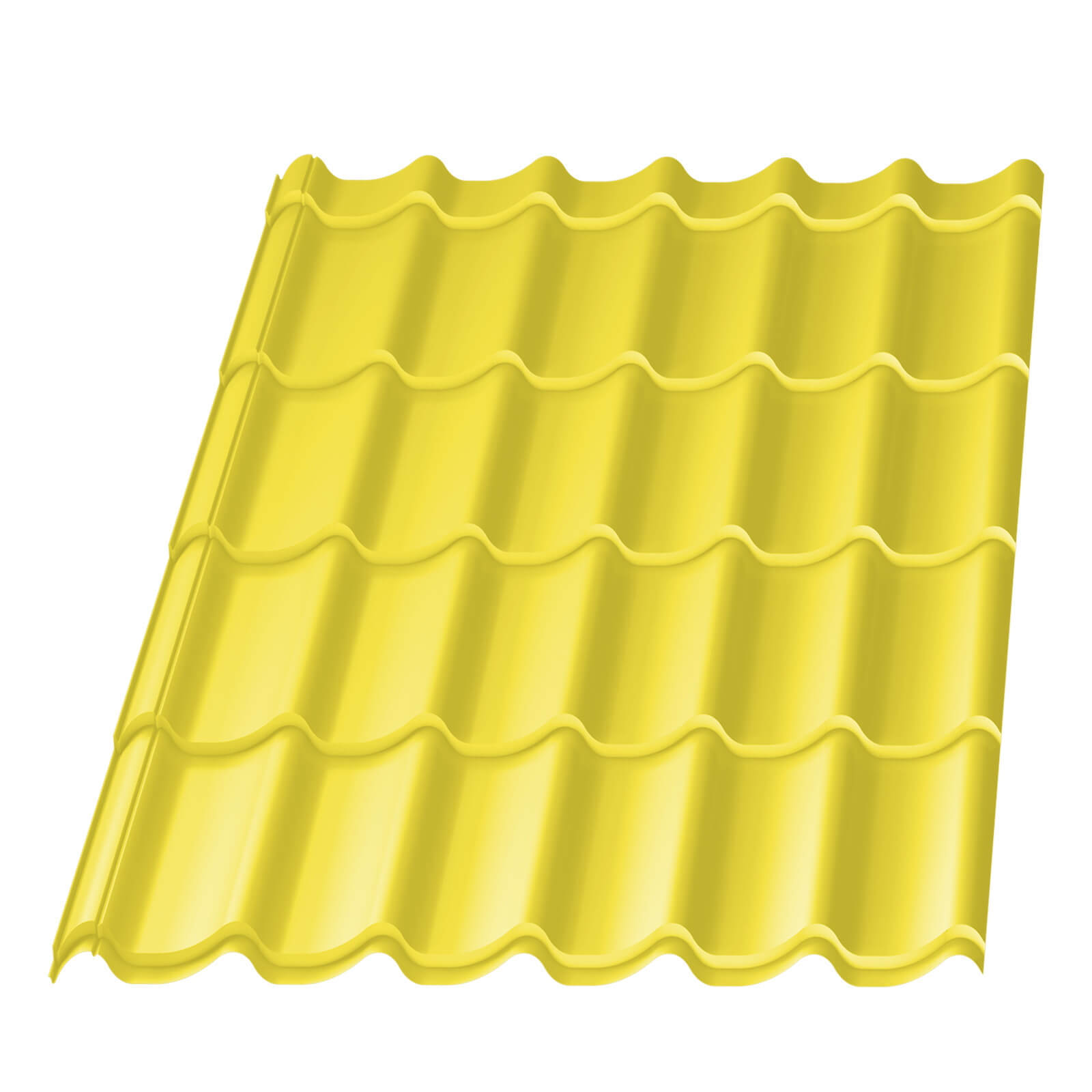 Металлическая черепица Меркурий RAL 1018 Желтый имеет профиль внешне на кровле напоминающий классическую керамическую черепицу. Меркурий — это обновленный аналог профиля металлической черепицы для кровли крыши. Форма профиля имеет богатый внешний вид напоминающий небольшие набегающие волны. Лучшие показатели герметизации сделали профиль Меркурий гарантом стабильной и долговременной службы на крышах в Кемерове. Данный профиль отличается не только своим качеством, но и благородным внешним видом.