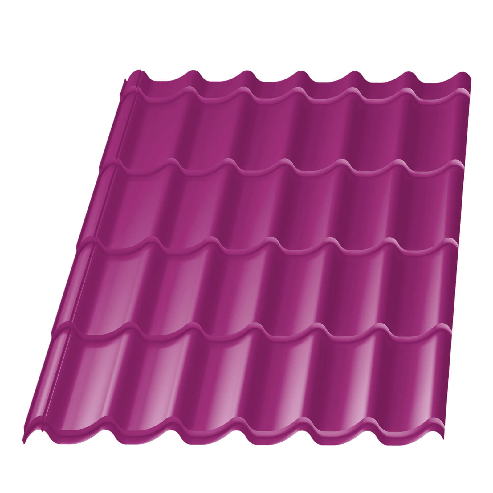 Металлическая черепица Меркурий цвет RAL 4006 Пурпурный имеет профиль внешне на кровле напоминающий классическую керамическую черепицу. Меркурий — это обновленный аналог профиля металлической черепицы для кровли крыши. Форма профиля имеет богатый внешний вид напоминающий небольшие набегающие волны. Лучшие показатели герметизации сделали профиль Меркурий гарантом стабильной и долговременной службы на крышах в Кемерове. Данный профиль отличается не только своим качеством и практичностью, но и благородным внешним видом.