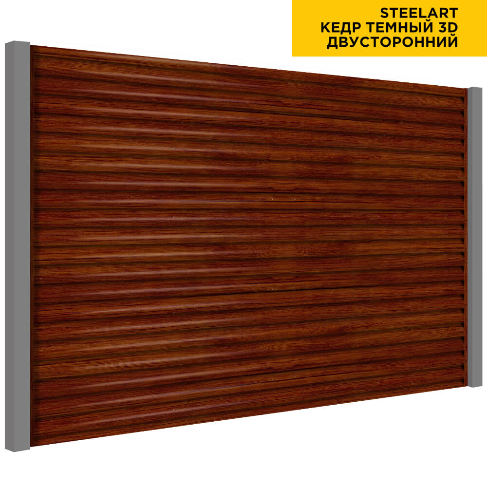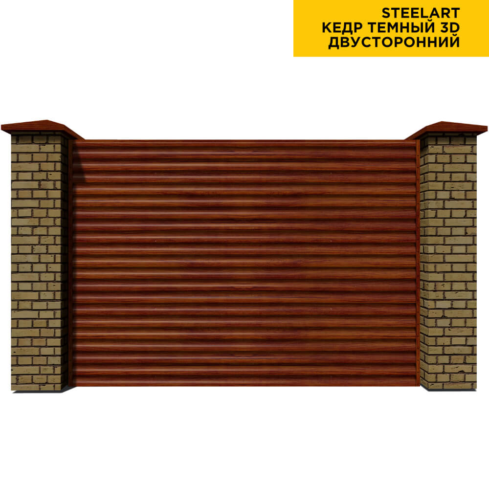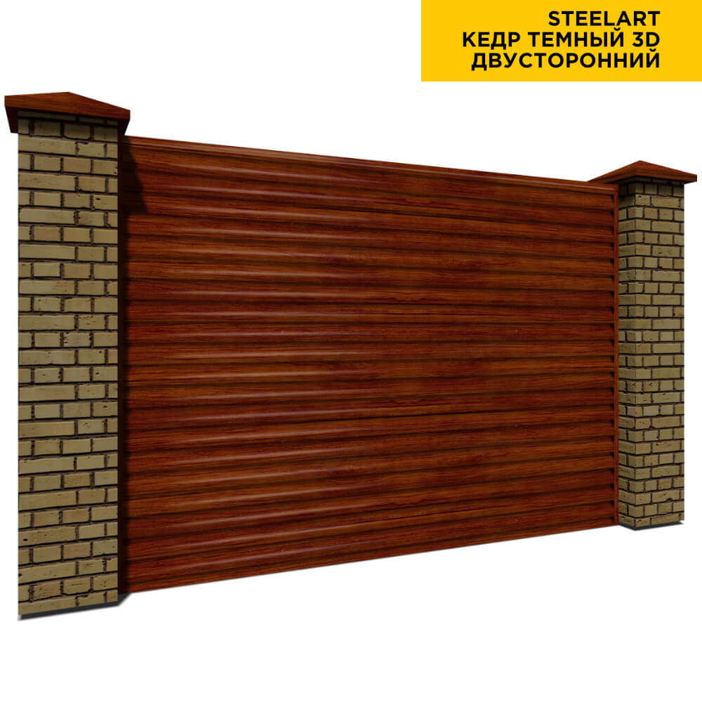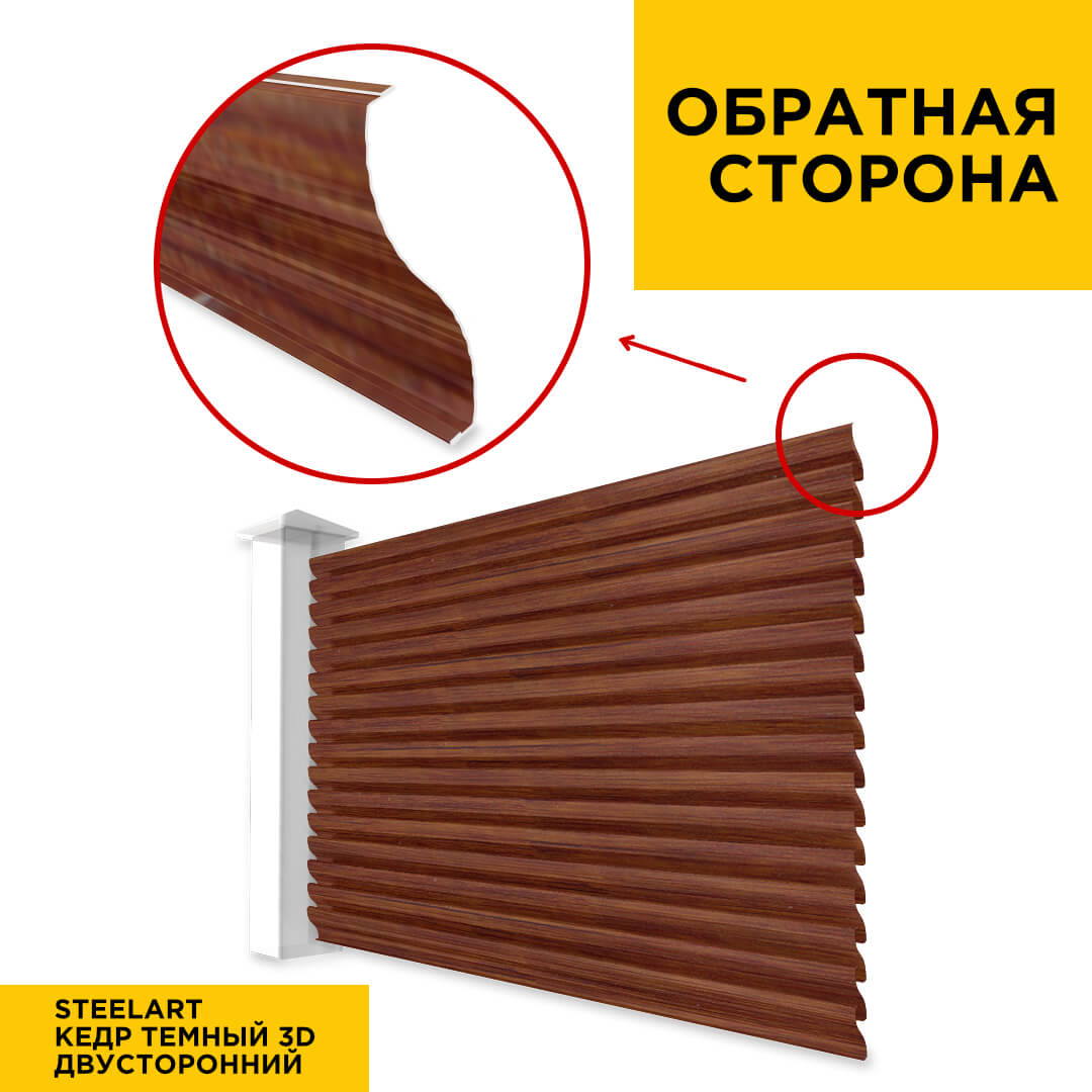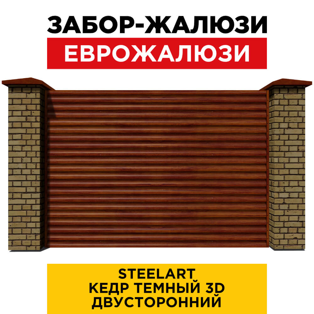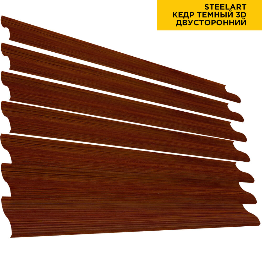 Ламель Еврожалюзи металлическая S-образная, цвет под дерево Кедр Темный 3D SteelArt Россия двухстороннее покрытие, длина любая кратно 1см под заказ - для забора-жалюзи, беседки, перголы в Кемерове