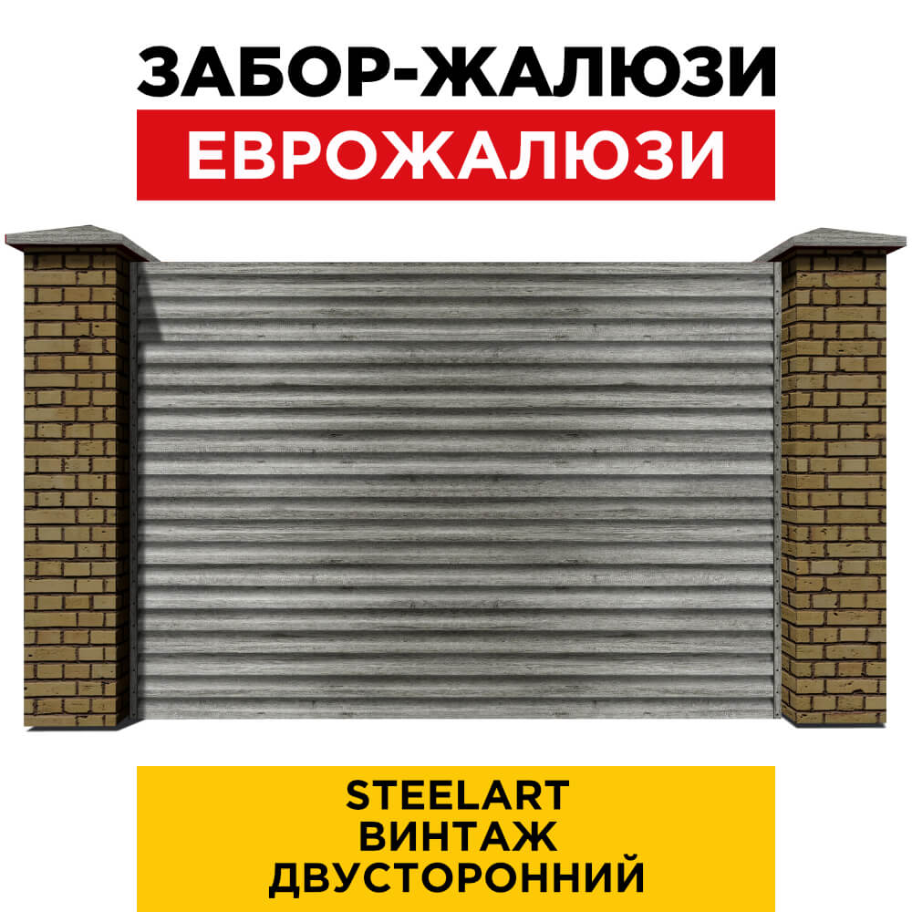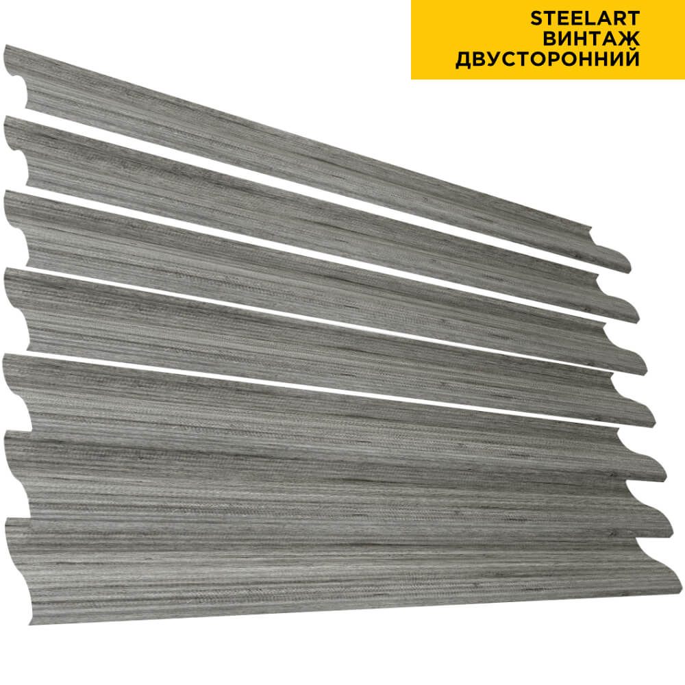Ламель Еврожалюзи металлическая S-образная, цвет под дерево Винтаж SteelArt Россия двухстороннее покрытие, длина любая кратно 1см под заказ - для забора-жалюзи, беседки, перголы в Кемерове