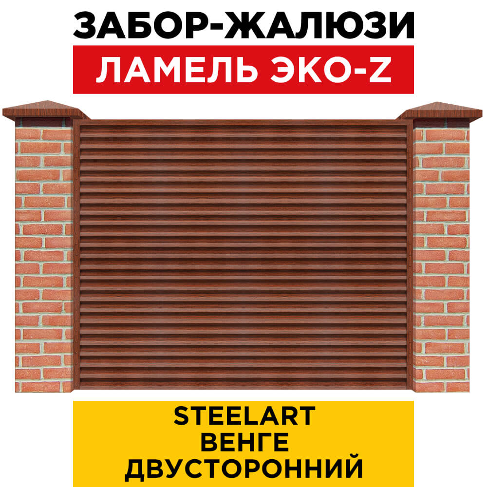 Ламель металлическая Z-образная простая ЭКО-Z, цвет под дерево Венге SteelArt двухстороннее покрытие, длина любая кратно 1см под заказ - для забора-жалюзи, беседки, перголы в Кемерове